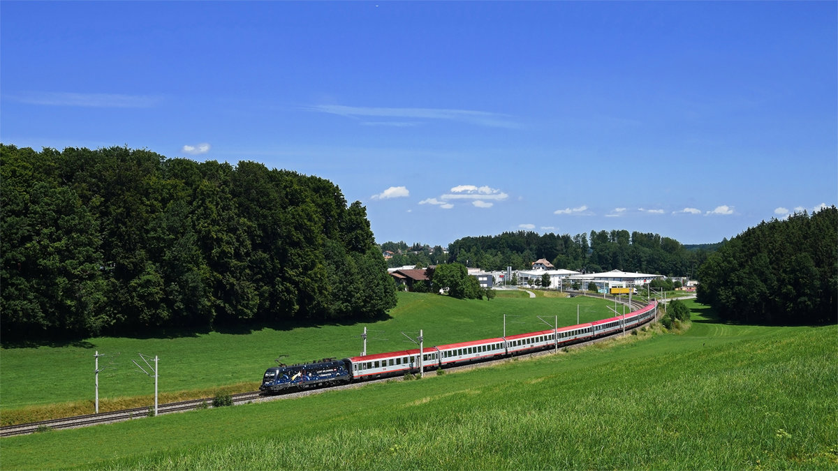 Die Railjet 1116 154 war am Vormittag des 24. Juli 2016 mit dem 40501 nach Breclav unerwegs und wurde von mir bei Foirach fotografiert.
