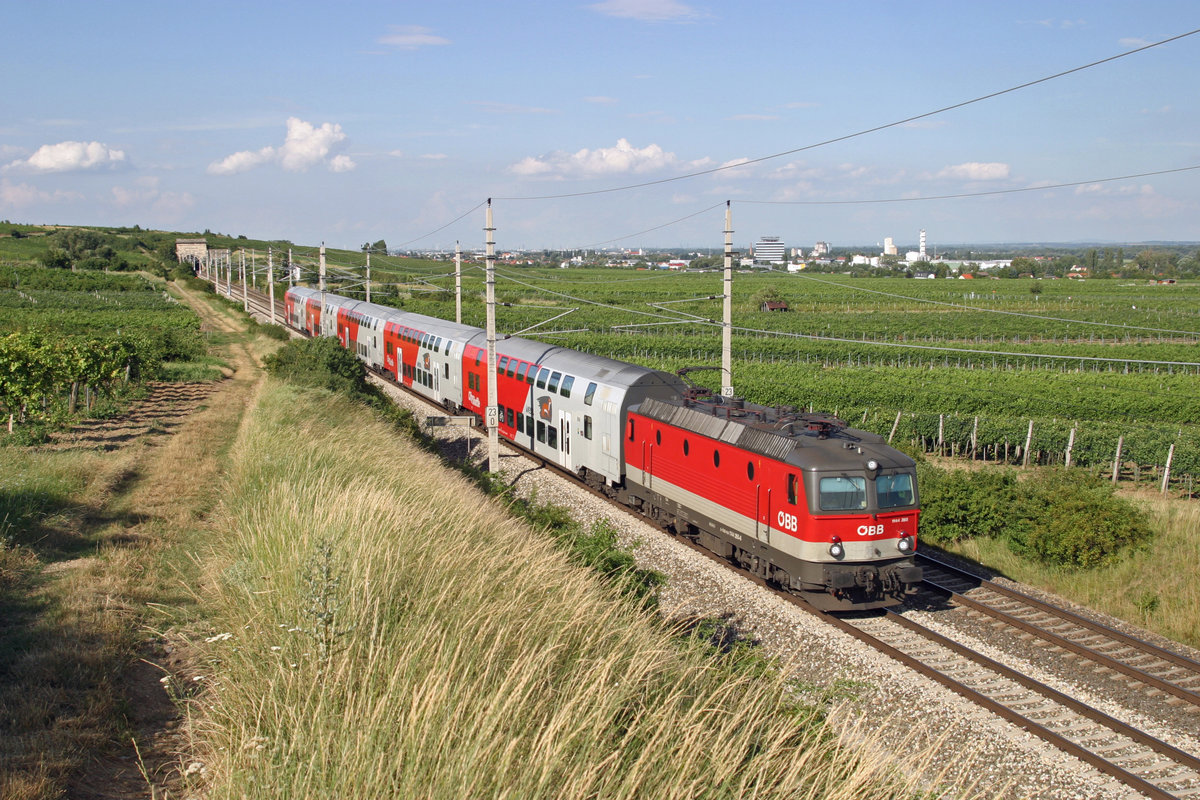 1144.265 fährt mit R-2351 durch die tolle Weinlandschaft der Südbahn bei Pfaffstätten am 29.7.16
