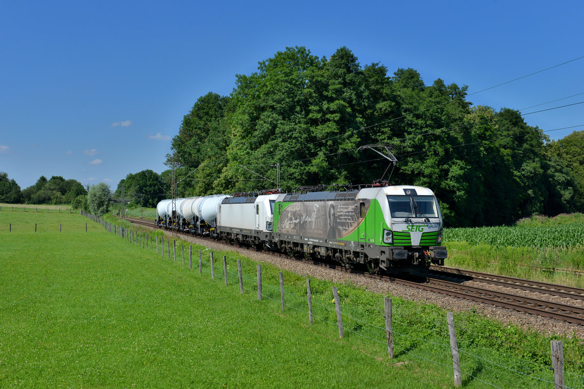 151 082 mit einem Güterzug am 27.06.2016 bei Amselfing.