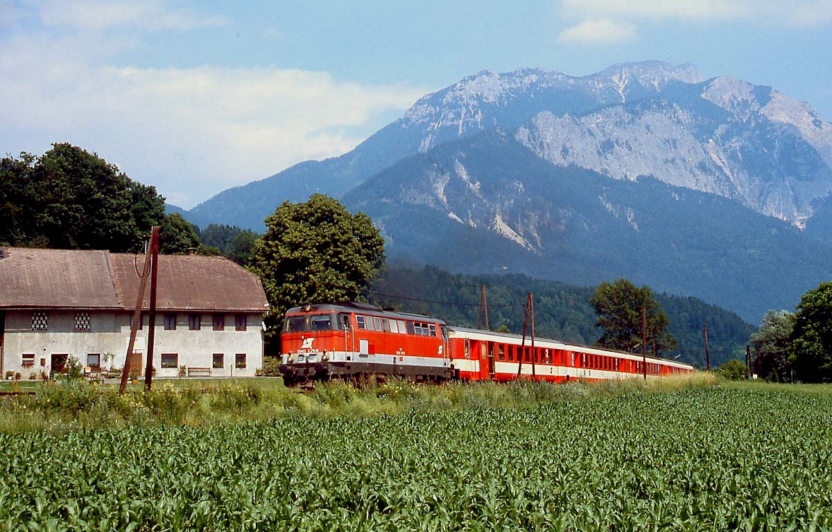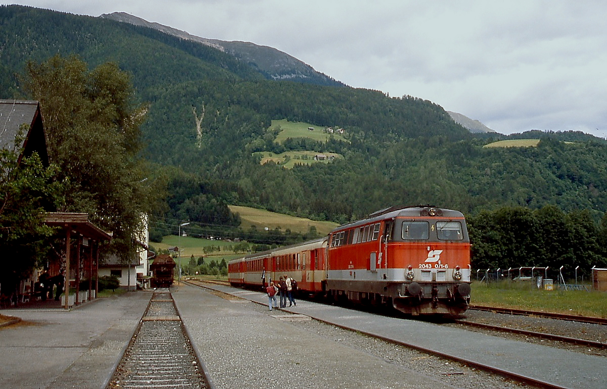 Im Sommer 2000 verläßt die 2043 071-6 mit einem Regionalzug nach Kötschach-Mauthen Emmersdorf im Gailtal