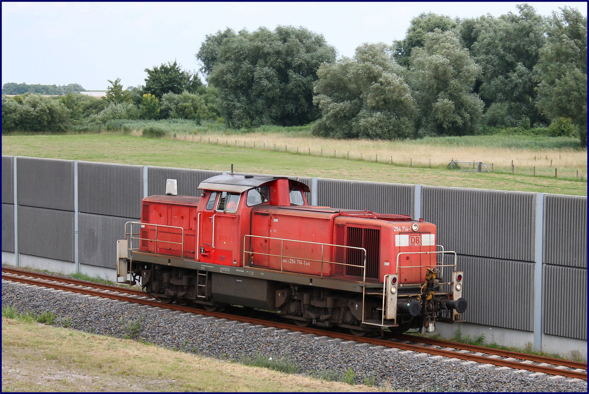 294 714-1 der DB bei Ihrer fahrt auf dem Wilhelmshavener Industriegleis ins Binnenland. 29/07/2016