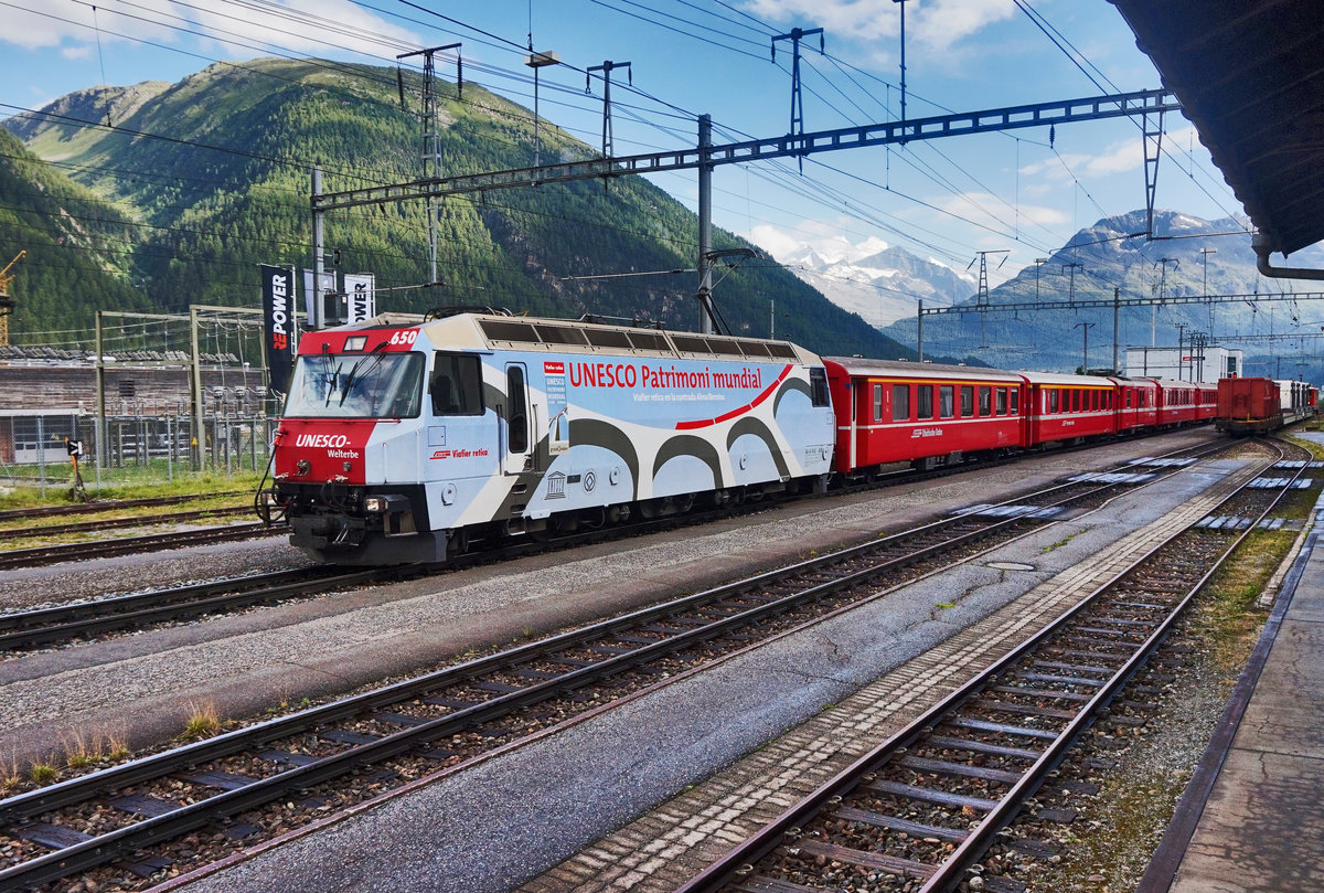 UNESCO Welterbetag bei der RhB. R1628 mit ABe 8/12 3515 in Pontresina. (12.06.2016)