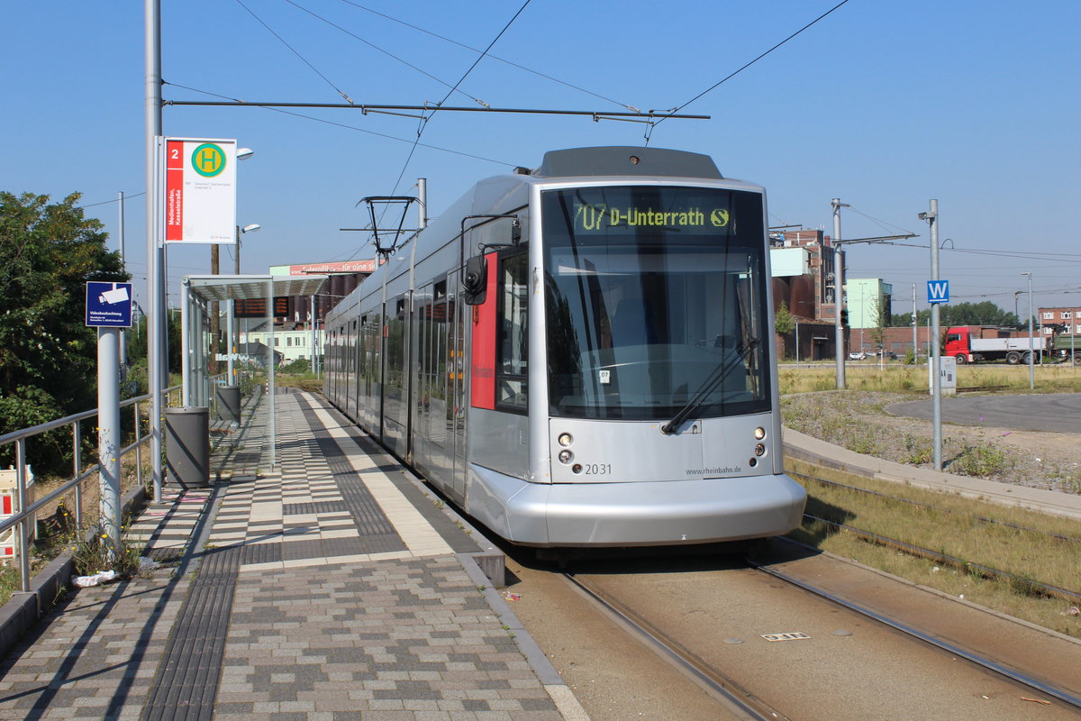 Düsseldorf Rheinbahn SL 707 (NF10 2031) Medienhafen, Kesselstraße am 19. Juli 2016.