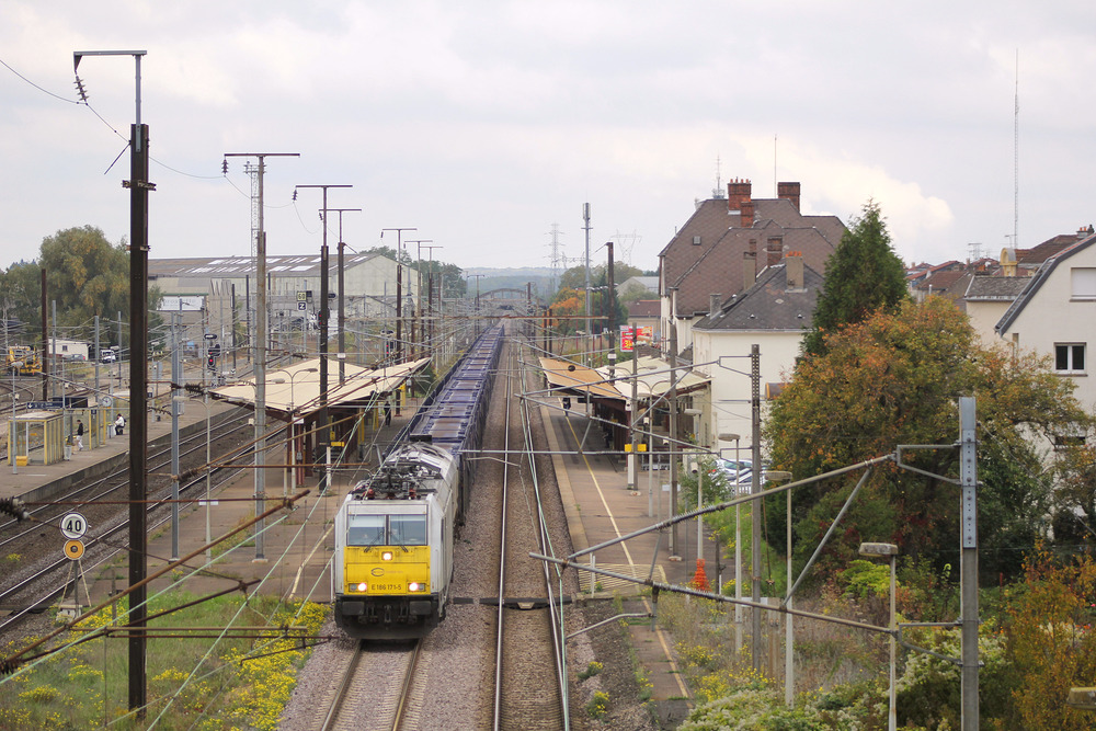 ECR E 186 171 mit leeren Autotransportwagen, aufgenommen in Hagondange.