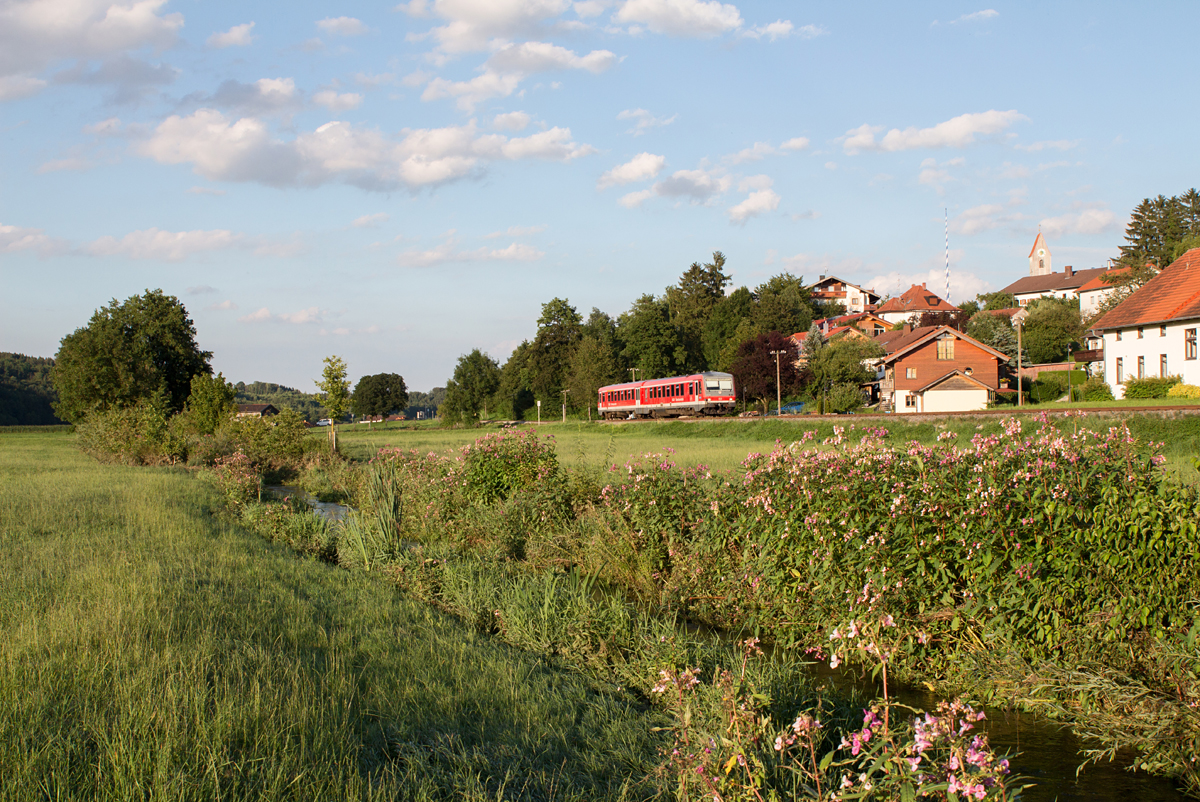 Gerade noch im richtigen Licht konnte 628 565-4 auf dem "Filzenexpress" am 29.07.16 in Oberndorf fotografiert werden. Sein Weg führte von Wasserburg (Inn) nach Grafing Bahnhof.