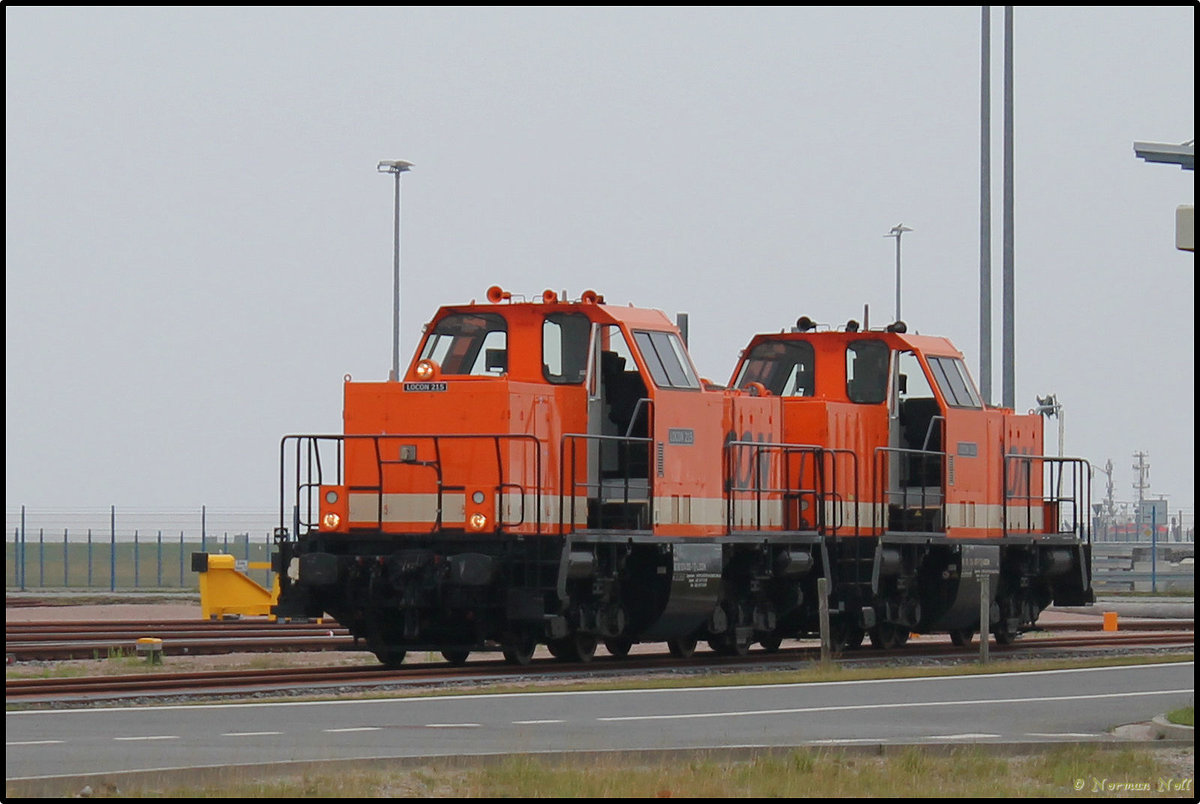 LOCON 215 und 216 abgestellt auf dem Jade-Weser-Port und warten auf Ihren Containerzug der gerade abgefertigt wird. Wilhelmshaven 22/07/2016