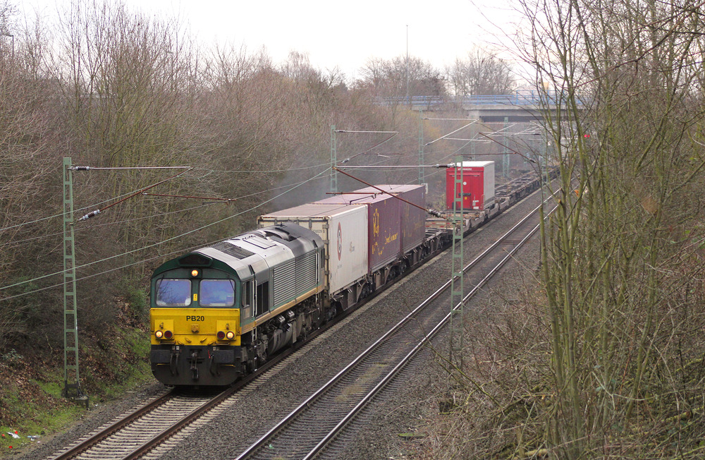 Railtraxx PB 20 mit einem KLV-Zug von Frankfurt-Höchst nach Belgien.