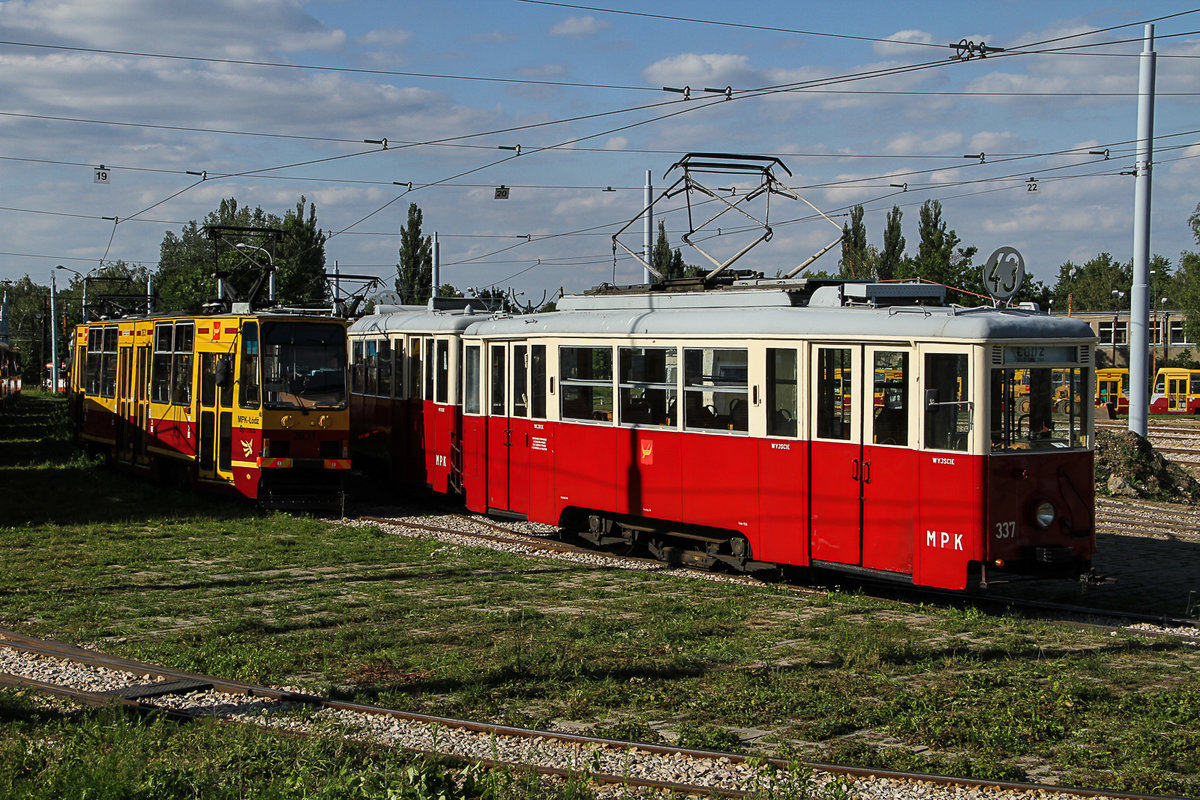 Über die Mauer des Depot von Lodz habe ich diese schöne Foto am 22.07.2016 gemacht. Historische Strassenbahn der Stadt Lodz mit Nummer 337.