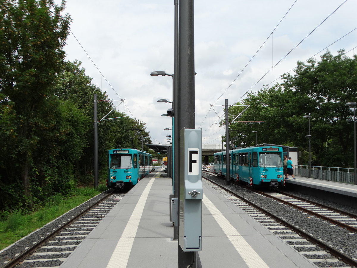VGF Düwag Ptb Wagen 730 und 737 am 28.07.16 in Frankfurt Preungesheim Endhaltestelle
