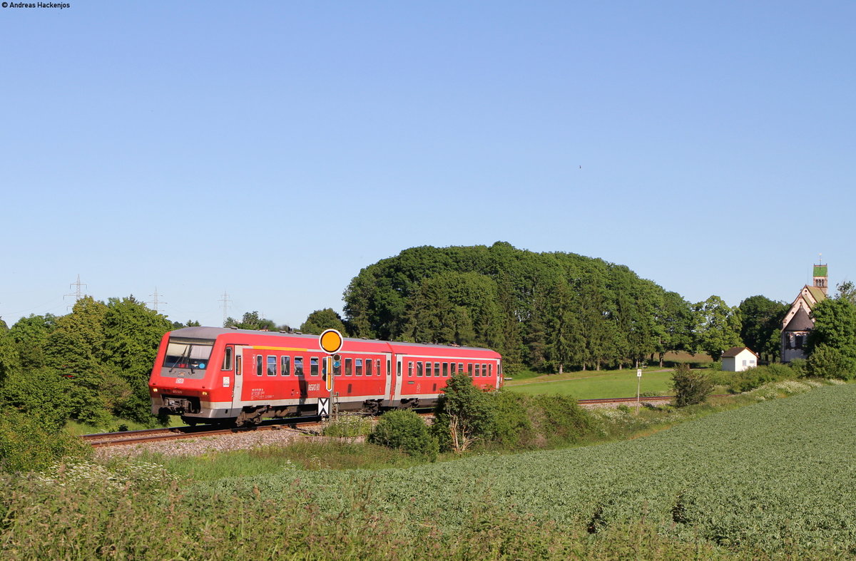 628 902 als Rb 22370 nach Ehingen an der Donau kurz nach dem Bahnhof Schmiechen.