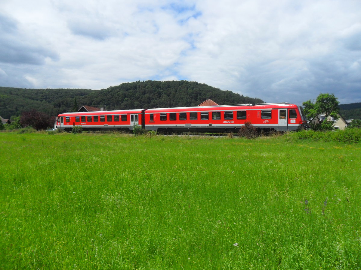 Nach dem der der RE 57 in Bestwig wegen einer Streckensperrung am 2.7.2016 Kopfmachen musste, ist der Zug nun wieder auf dem Weg nach Winterberg im Hochsauerlandkreis. Am Zugschluß ist der 648 606 zu sehen.