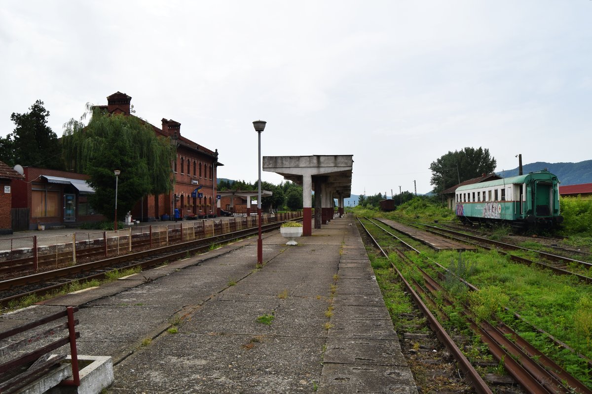 Bahnhof Calimanesti am 17.06.2016. Ansicht in Richtung Sibiu vom Bahnsteig am Gleis 1.