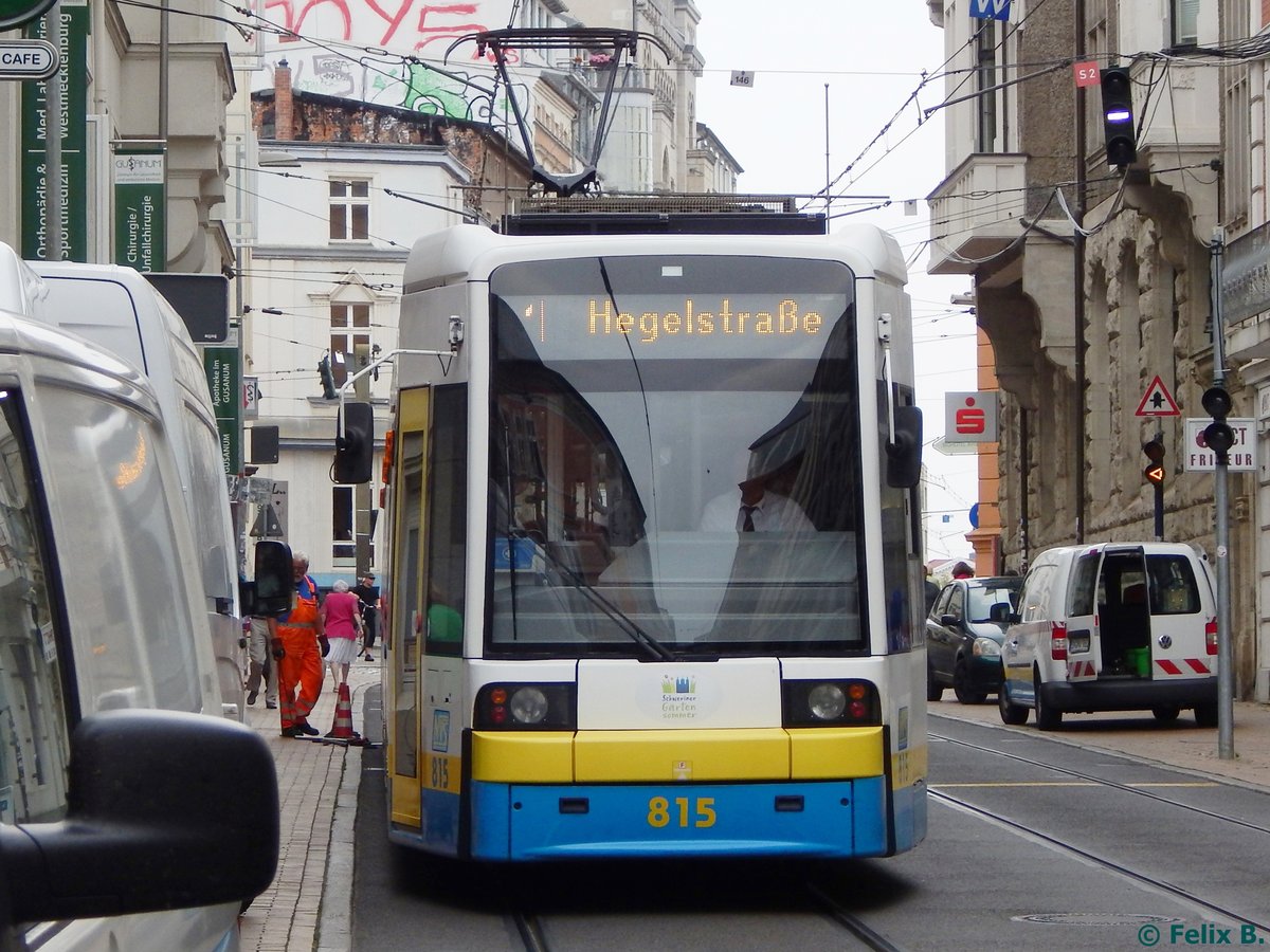 Bombardier Nr. 815 des Nahverkehr Schwerin in Schwerin am 18.08.2015