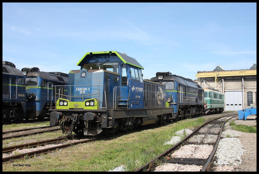 Bunt gemischt standen am 22.5.2016 die Lokomotiven im Diesellok Depot Kamienice Zabkowicki. Vorn ist eine modifizierte SM 42 mit neuer Nummer 620201 zu sehen. Dahinter stehen eine Taiga Trommel ST 44 und ein Kutter ST 43.