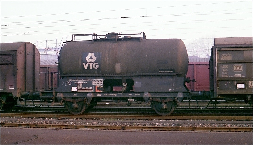 DB VTG Kesselwagen mit Heizung Nr 737 0 484 in Mailand, Febr. 1984 - gescannter Negativfilm