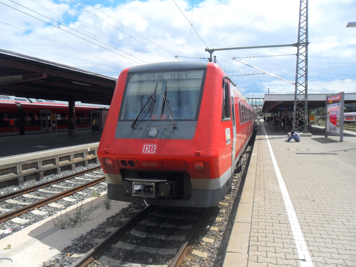Der noch immer Unneigefähige 611 021 erreicht mit einer Verspätung von ca. 5 Minuten als Re 22337 (Sigmaringen - Ulm hbf) Ulm hbf auf Gleis 7 Nord.