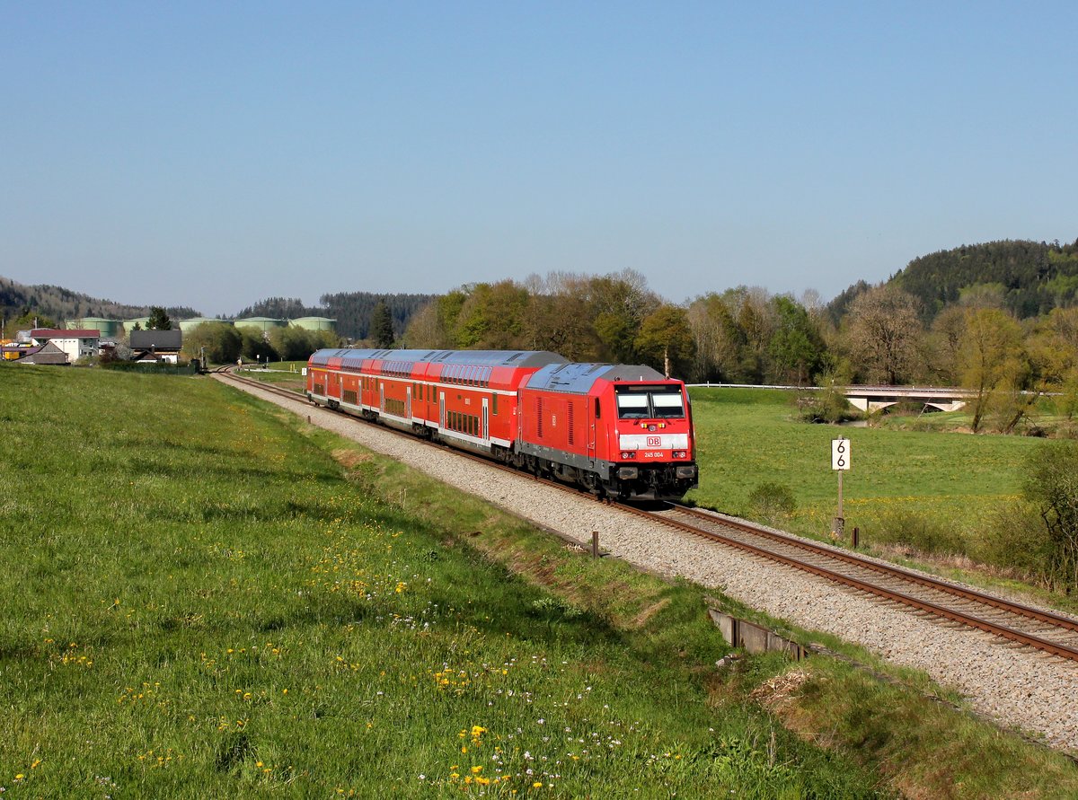 Die 245 004 mit einem Umgeleiteten RE am 05.05.2016 unterwegs bei Aichstetten.