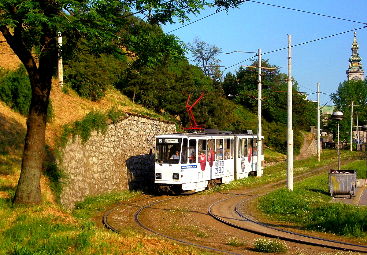 Die Strecke zur Festung Belgrad hinauf biete einige schöne Fotomotive, hier hat der KT4 250 am 09.05.2009 auf seinem Weg hinunter in die Innenstadt fast das Ende der Steigungsstrecke erreicht