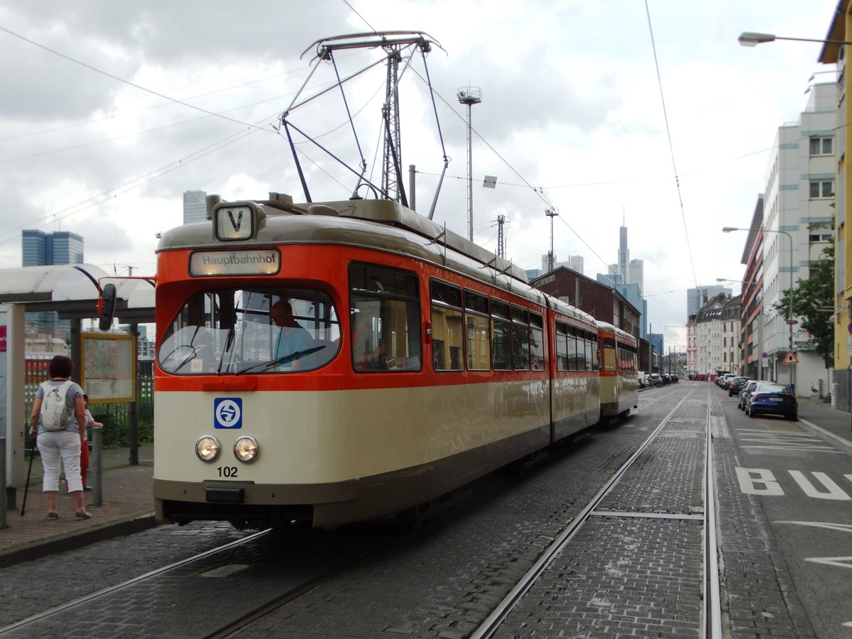 VGF Düwag M-Wagen 102 am 25.06.16 in Frankfurt am Main nach der Straßenbahnparade