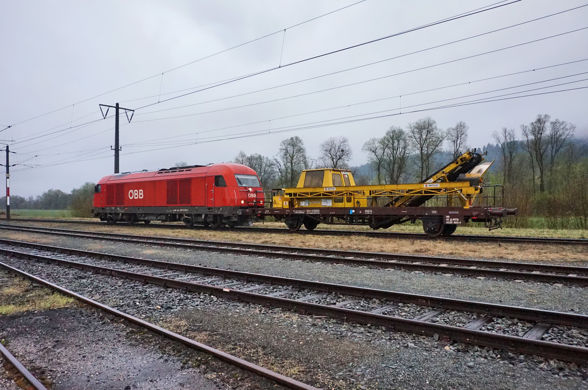 225 010-8 von DB-Bahnbau in Herne-Unser-Fritz in Richtung Gelsenkirchen unterwegs. Lieben Gruß zurück an den Tf. 04.07.2016