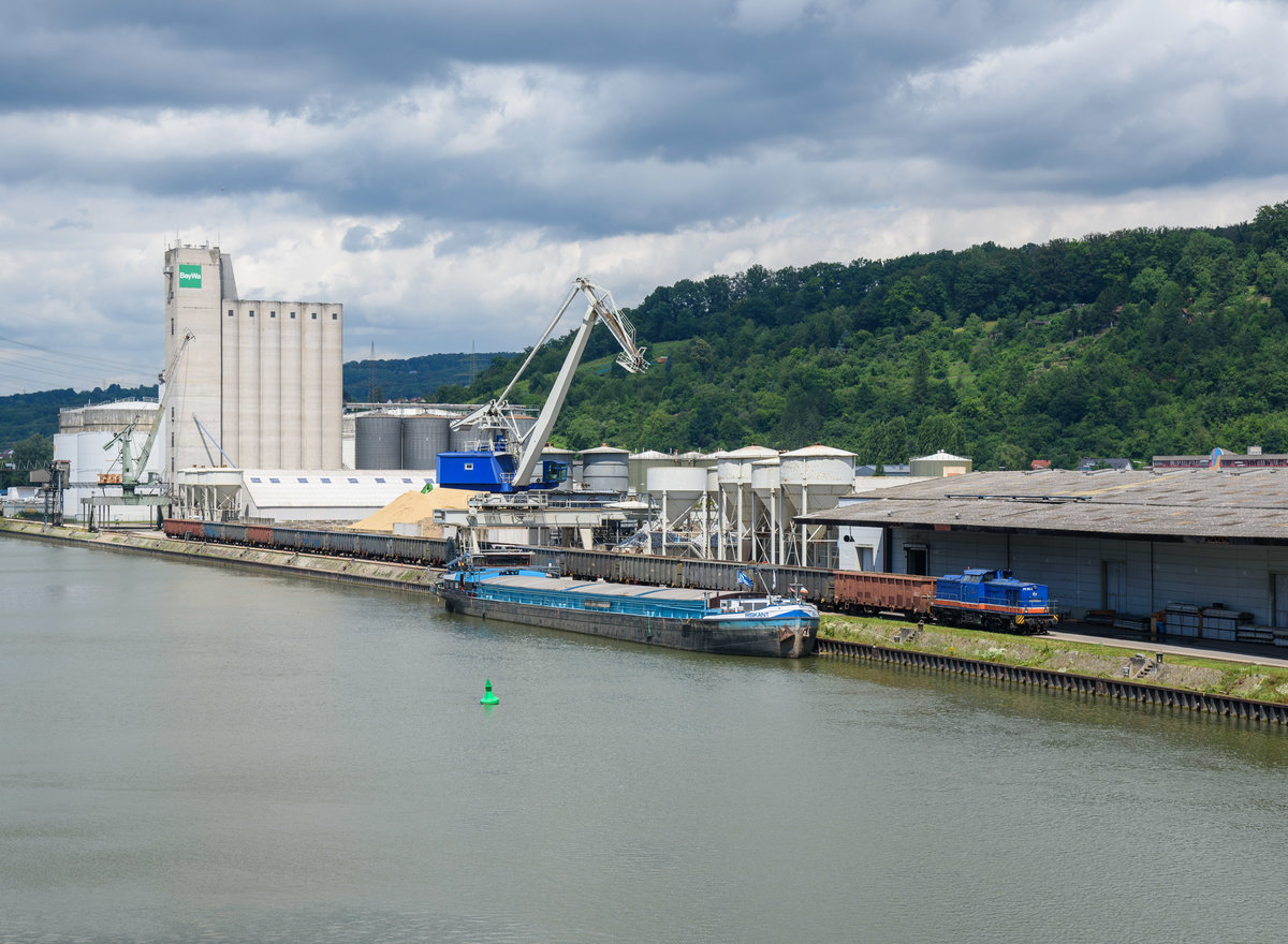 293 002 die V 100 Ost rangiert den Sandzug im Plochinger Hafen am 1.7.2016.