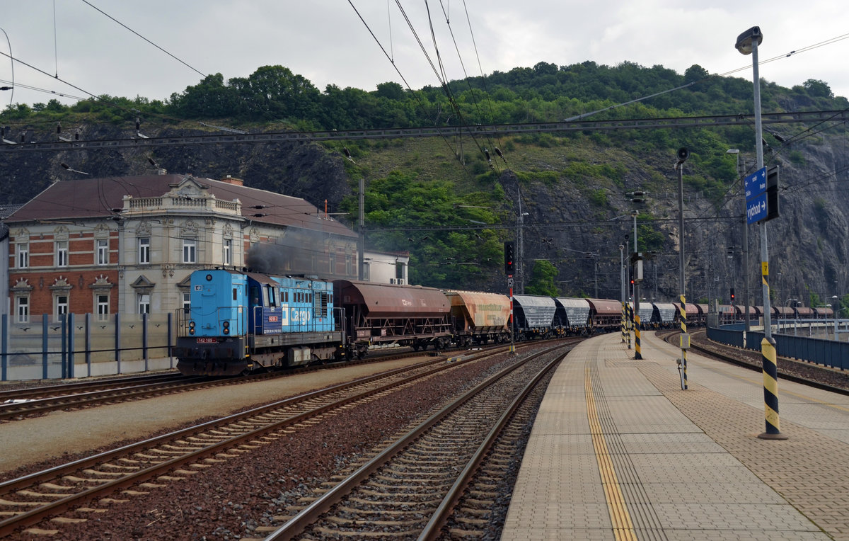 Angekommen ist der Motoracek 262 1183 in Kamenicky Senov. Noch regnet es nicht...... 02.07.2016 11:39 Uhr.