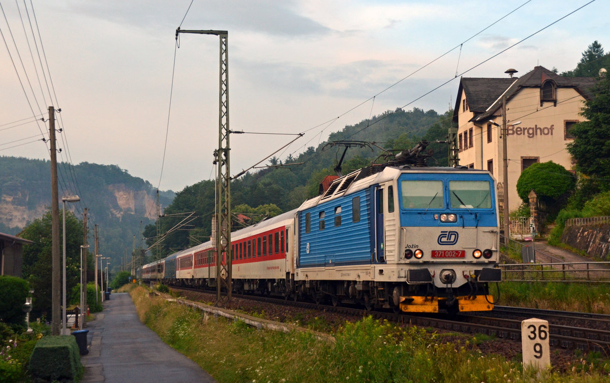 Die 480 005 mit einem IC nach Budapest am 02.07.2016 unterwegs bei Szárliget.