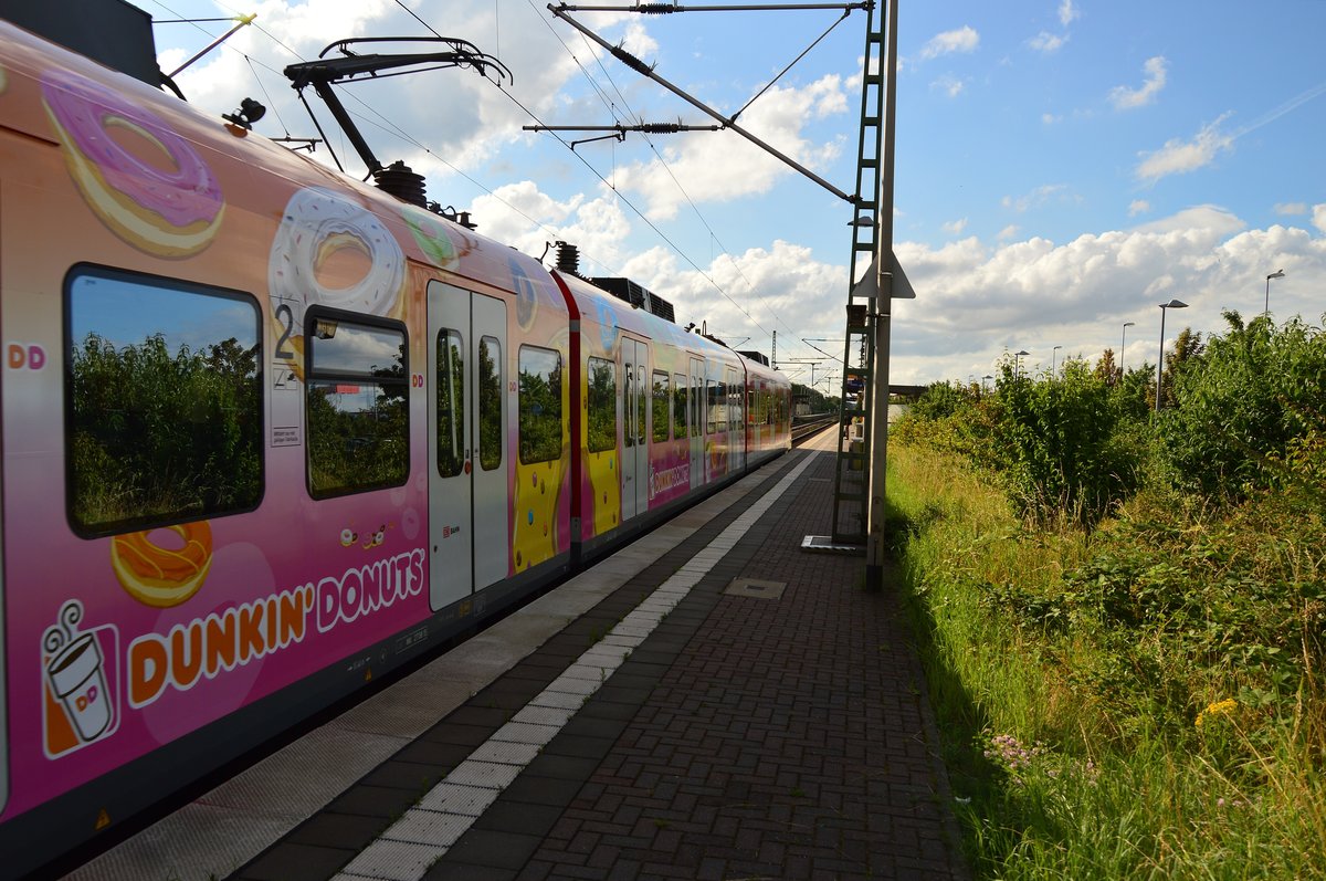 Der Triebwagen 654 009 ist als RB 34 nach Mönchengladbach unterwegs, als er mir am Mittag des 3.7.2016 vor die Linse gefahren kommt.
