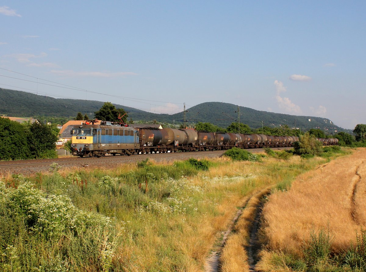 Die 431 070 mit einem Kesselzug am 02. 07.2016 unterwegs bei Vértesszőlős.