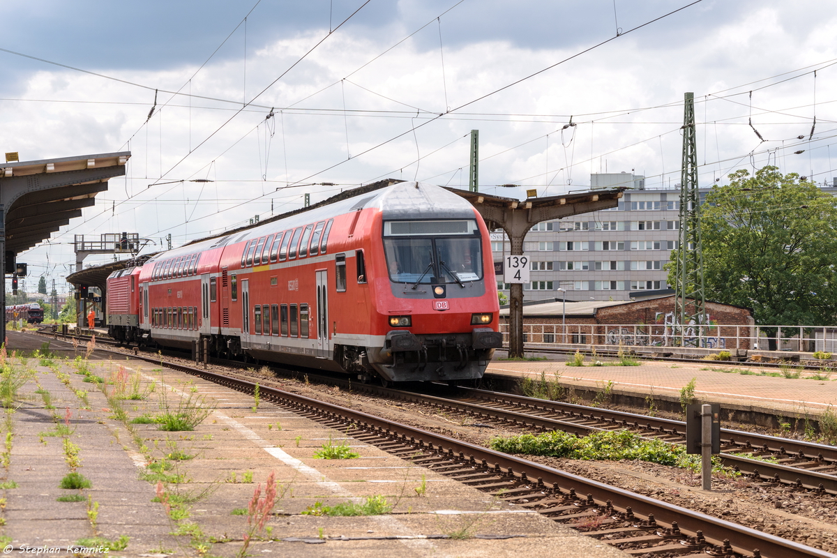 RE14 (RE 17737) von Magdeburg Hbf nach Dessau Hbf in Magdeburg-Neustadt und geschoben hatte die 114 004-5. 01.07.2016