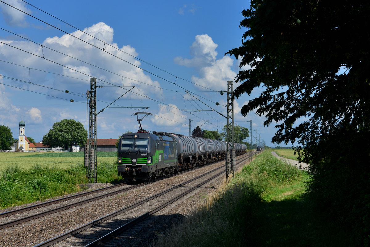 193 213 mit einem Kesselzug am 27.06.2016 bei Amselfing.