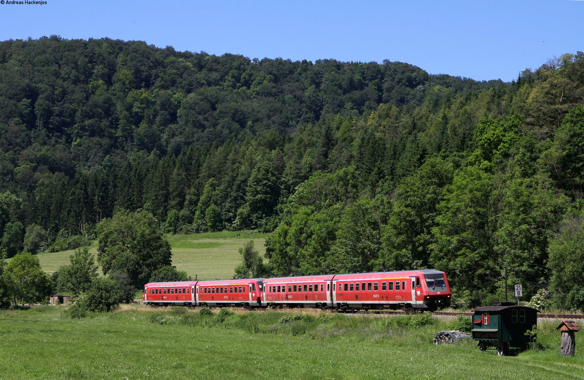 218 427-3 mit dem RE 28670 (Augsburg Hbf-Tuttlingen) bei Beuron 23.6.16