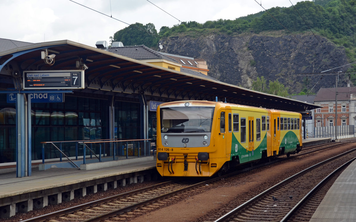 914 126 wartet am 14.06.16 im Bahnhof Usti nad Labem auf die Abfahrt nach Bilina.