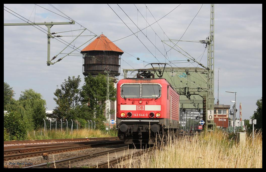 DB 143644 hatte am Morgen des 04.07.2016 einen Kesselwagen Zug nach Oldenburg gebracht und fährt, die Hunte Klapp Brücke verlassend, solo in Richtung Bremen zurück.