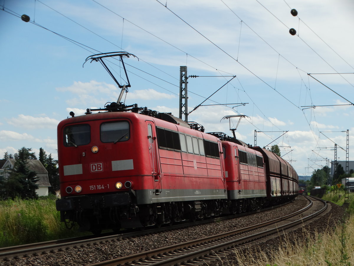 DB Cargo 151 164-1 und 151 xxx-x mit Kohlewagen am 29.06.16 bei Walluf