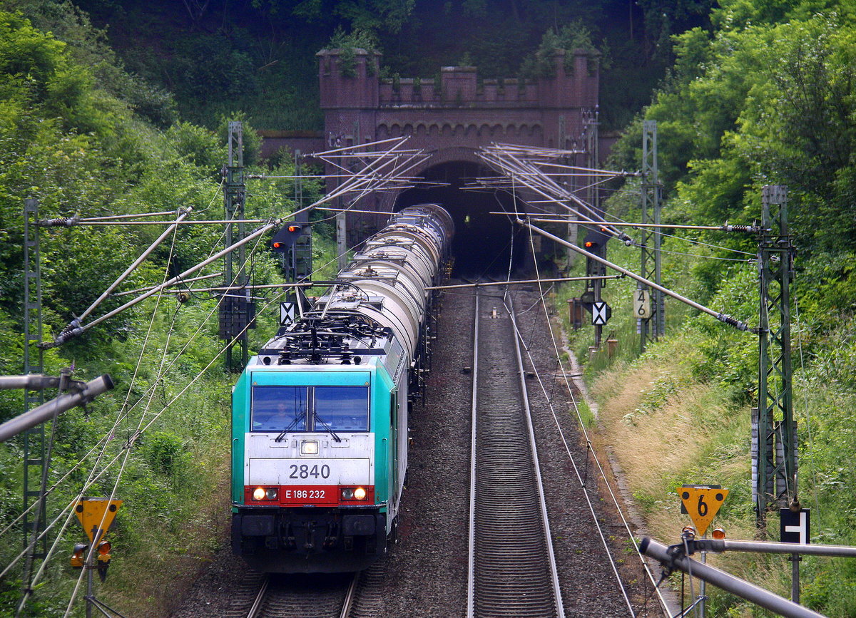 Die Cobra 2840 kommt aus dem Gemmenicher-Tunnel raus mit einem Kesselzug aus Antwerpen-BASF(B) nach Ludwigshafen-BASF(D) und fährt nach Aachen-West und rollt die Gemmenicher-Rampe herunter nach Aachen-West.