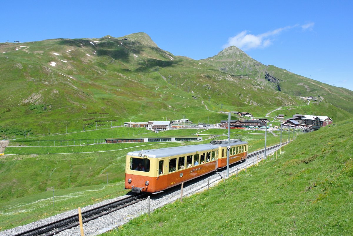 Die Tage der alten BDhe 2/4 im Regelverkehr sind endgültig gezählt. Bereits 2 der neuen Triebzüge sind im Einsatz; deshalb nutzte ich die Gelegenheit noch einmal: BDhe 2/4 Nr. 206 und Bt 30 vor herrlicher Bergkulisse oberhalb von kleine Scheidegg, 04.07.2016.