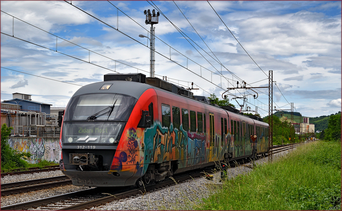 SŽ 312-119 fährt durch Maribor-Tabor Richtung Zidani Most. /1.6.2016
