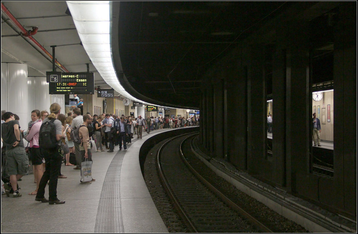 Der Bahnhof Bruxelles Central/Centraal ist wohl der am stärksten frequentierte Bahnhof in Belgien und dies bei nur sechs Gleisen und relativ schmalen Bahnsteigen. Die Bahnsteige wirken im Vergleich zum Gleisbereich recht hell und scheinen auch vor kurzem modernisiert worden zu sein.