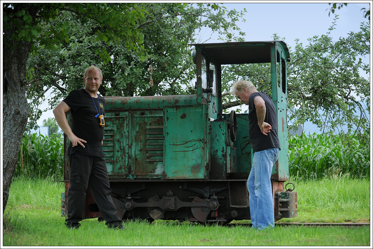Tag der offenen Bahnhofstür bei der Stainzer Lokalbahn am 25.6.2016. Harry und Herbert beim Fachsimpeln.