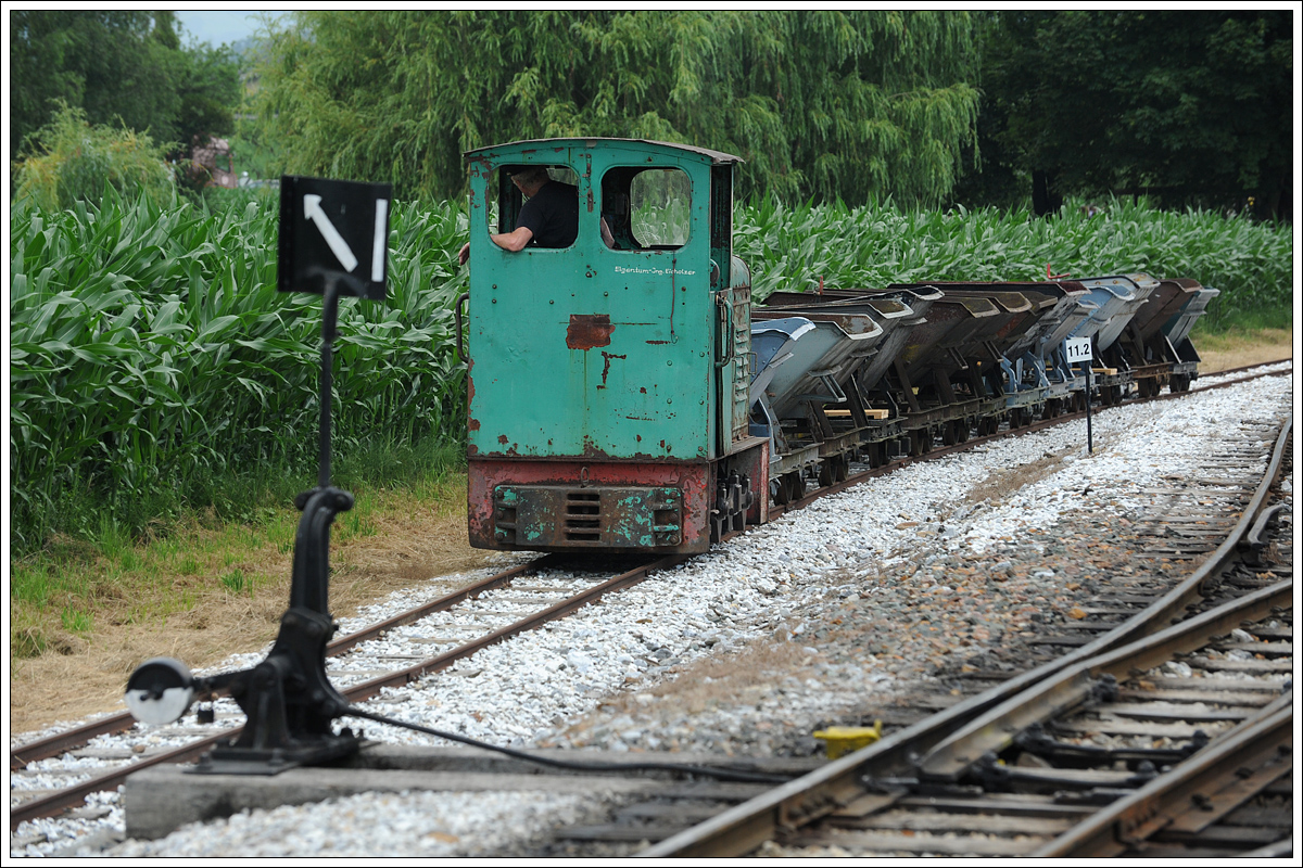 Tag der offenen Bahnhofstür bei der Stainzer Lokalbahn am 25.6.2016. Ein beachtlicher Kipplorenzug dreht hier seine Runden.