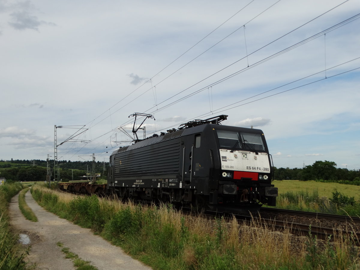 MRCE/Dispolok ES 64 F4-280 (189 280) mit leeren Containerwagen bei Wallluf am 29.06.16