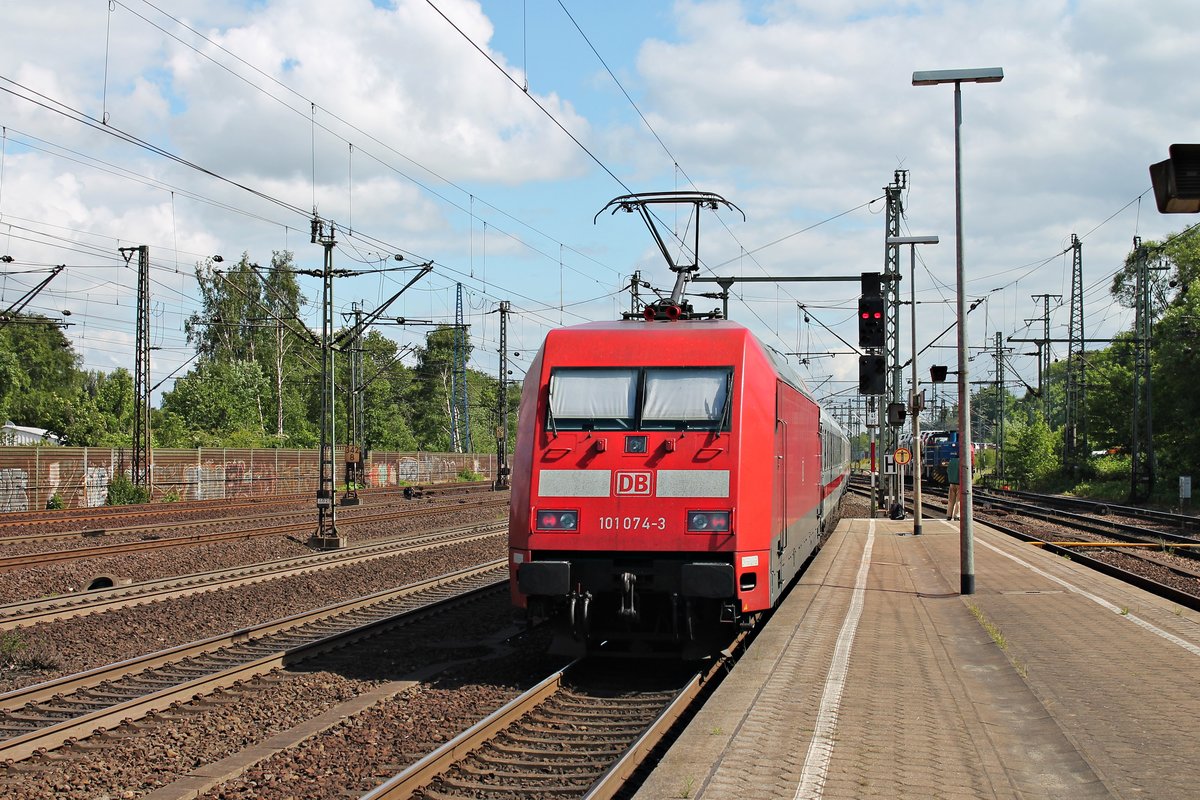 Nachschuss auf 101 074-3, als sie einen InterCity aus dem Harburger Bahnhof gen Maschen raus schob.