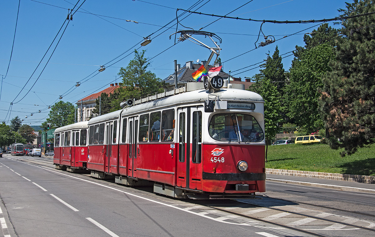 Wien E1 4548 + c4 1369 als Linie 49 im Baumgarten, 07.06.2016.