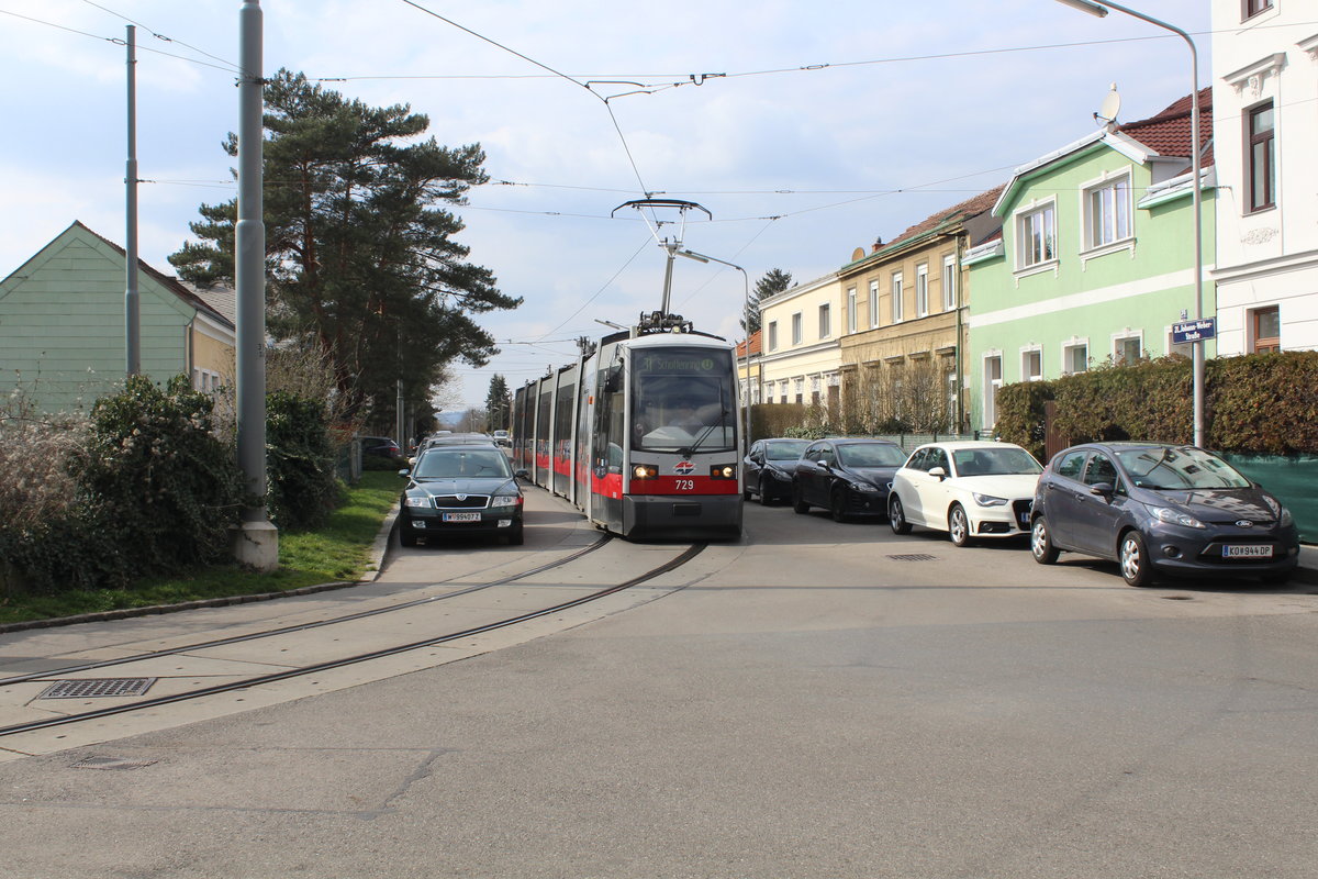 Wien ULF B1 705 als Linie 49 in der Schleife Baumgarten, 07.06.2016.