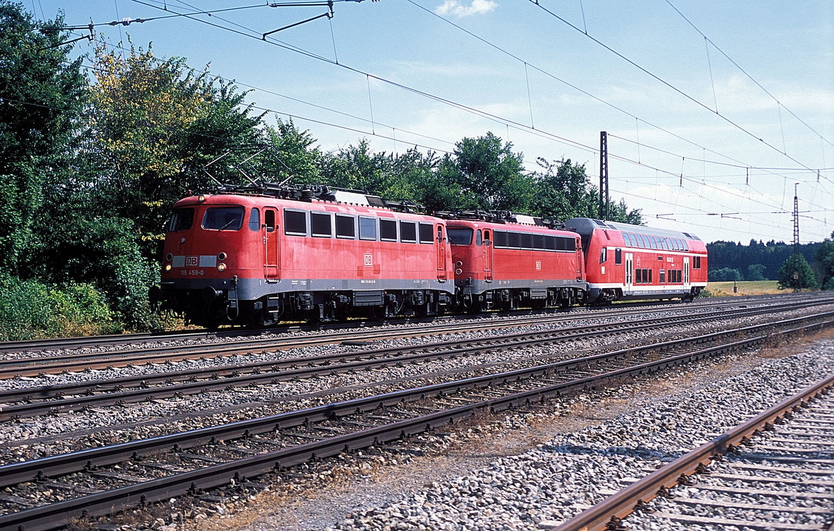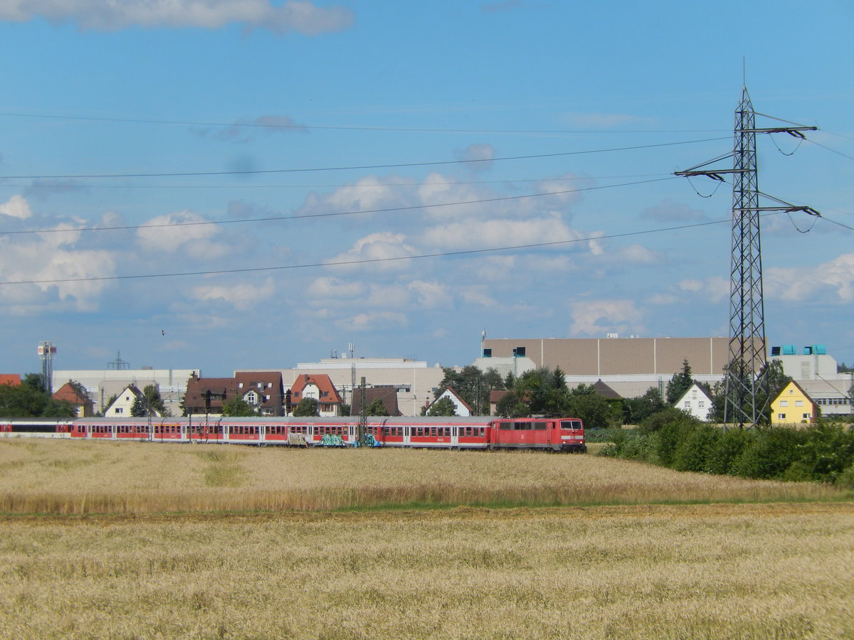 Wohl einer der letzten Einsätze der n-Wagen in Deutschland. Mit einer Lok der Baureihe 111 geht es mit der Regionalbahn nach Karlsruhe. 01.07.2016