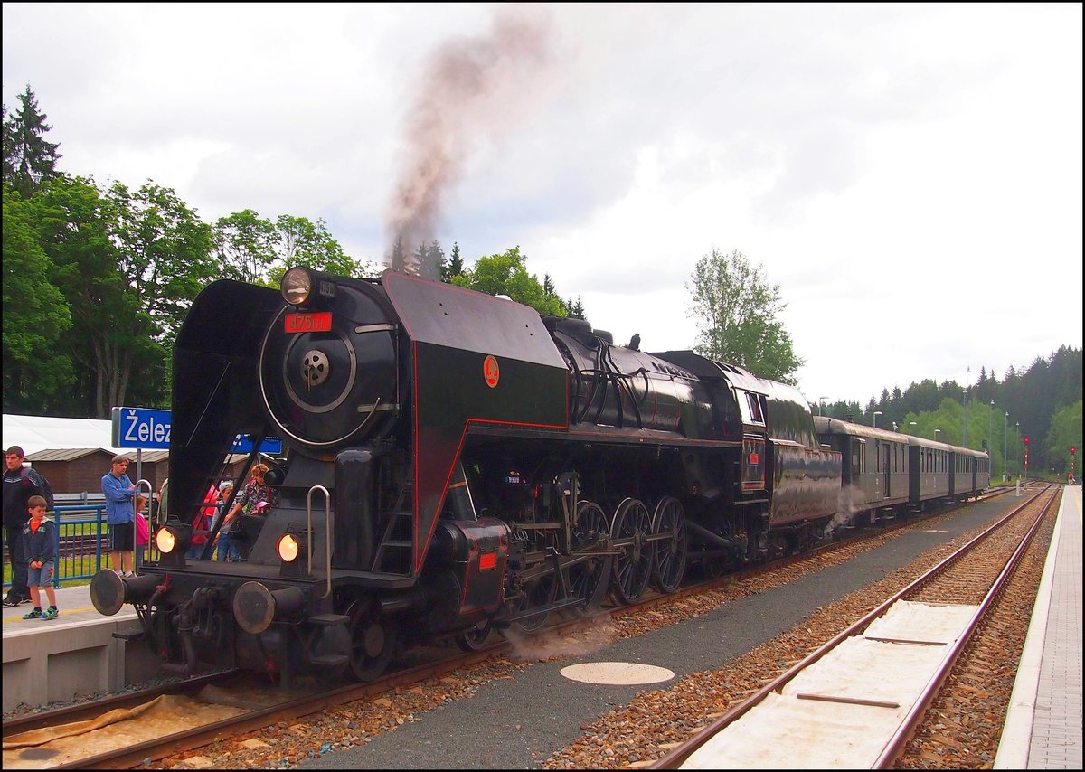 475.111 mit einem Sonderzug nach Špičák - Spitzberg am 3.7.2016 in Bhf. Železná Ruda - Böhmisch Eisenstein.