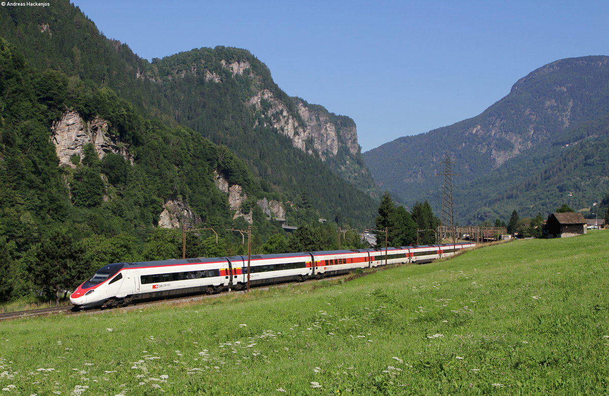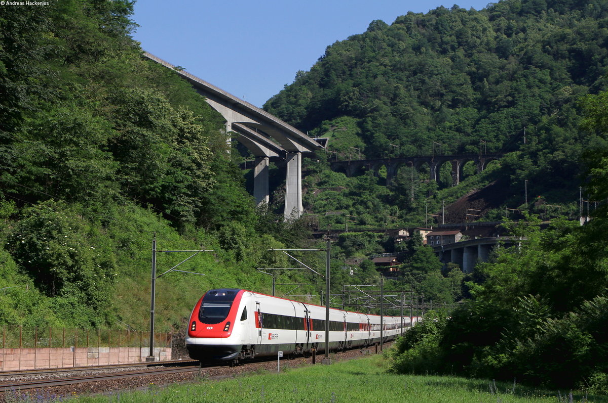 RABDe 500 014-9 "Max Frisch" und RABDe 500 022-4 "Expo 02" als IC 861 (Zürich Flughafen-Lugano) bei Faido 24.6.16