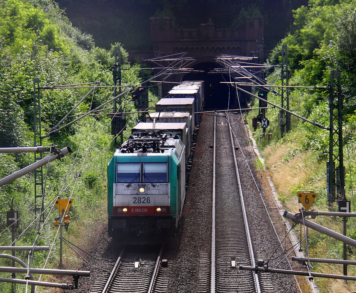 Die Cobra 2826 kommt aus dem Gemmenicher-Tunnel raus mit einem Containerzug aus Genk-Zuid-Haven(B) nach Novara(I) und fährt nach Aachen-West und rollt die Gemmenicher-Rampe herunter nach Aachen-West. Aufgenommen in Reinartzkehl auf der Montzenroute.