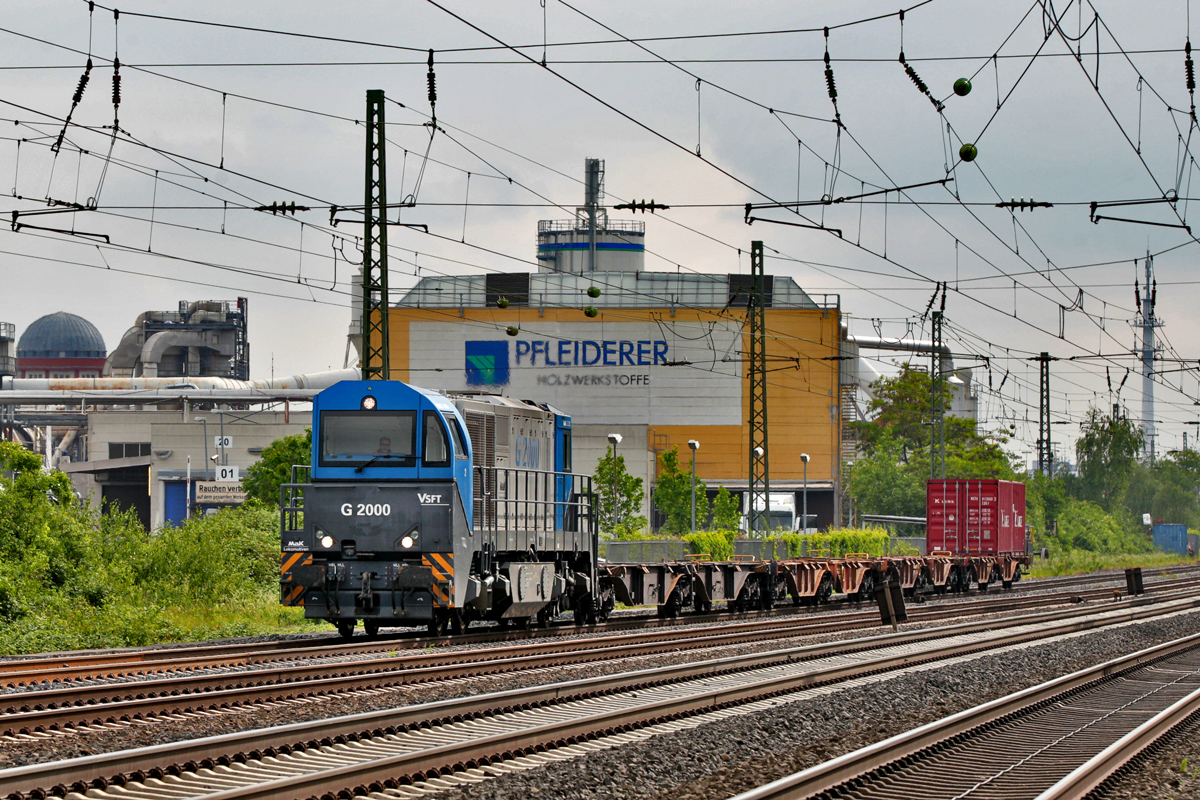 G 2000 BB fährt in Gütersloh mit einem Container vorüber.Bild vom 23.5.2016